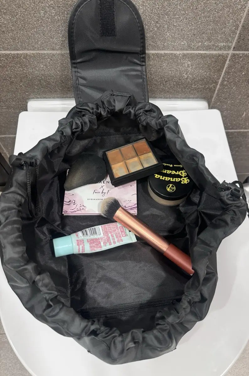 Pospremanje šminke više nije gnjavaža. Samo stavi sve na otvorenu torbicu i povuci vezice. Ne može biti jednostavnije.